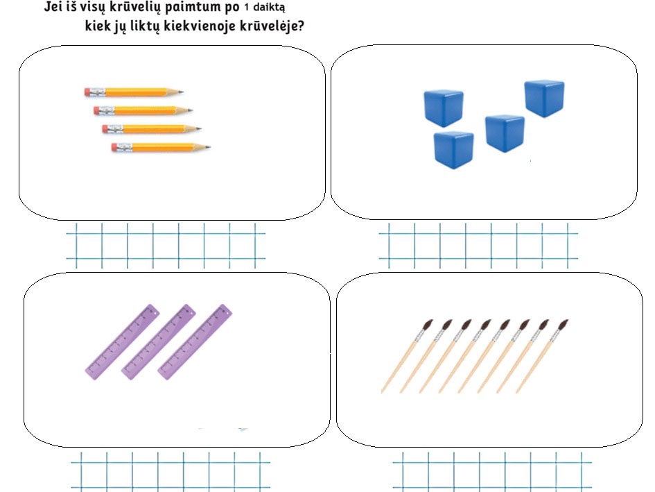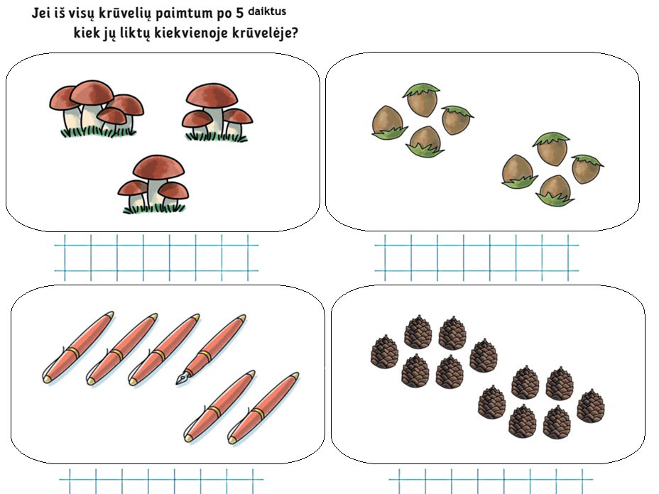 Užduotėlės skirtos susipažinti su mus visur lydinčiais skaičiais. Jau nuo pat gimimo, kai mokome vaikus parodyti, kur akytės, kur rankytės, visada pabrėžiame, kad jos yra dvi. Taip pamažu vaikas pradeda suvokti skaičiavimo esmę. Nuo vieno iki penkių vaikai skaičiuoti išmoksta gana greitai, bet tie skaičiai jiems, kaip eilėraštukas. Jie dar nesugeba suprasti, kaip skaičiai keičiasi ir atsiranda. Tačiau žaidimo pagalba pamažu supras, kaip viskas vysta. Todėl nepasiduokite mokydami vaikus skaičiuoti, dėlioti, galvoti. Vieniems lengviau viskas sekasi, kitiems sunkiau. Naudojant įvairius lavinimo būdus vaikai išmoks ne tik pažinti skaičius, bet ir skaičiuoti.